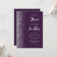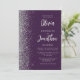 The left-hand edge of this elegant modern wedding invitation features a silver faux glitter border. The customizable text combines pale silver gray script and sans serif fonts on a dark purple background. The reverse side provides space for wedding details on a purple background, along with a QR code guests can scan to visit your website and RSVP, which saves the cost of printing and mailing separate RSVP cards.