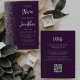 Convites Purple Silver Glitter Calligraphy QR Code Wedding