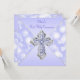 Lavanda roxo da Primeira Comunhão com elegante cruz roxa e diamante prateado em um belo fundo brilhando roxo. Você pode personalizar facilmente este bonito convite da Primeira Comunhão roxo adicionando seus detalhes de evento no tamanho e cor da fonte e na redação de sua escolha. Você também pode alterar a cor de fundo.