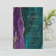 Convites Purple Teal Gold Agate QR Code Wedding