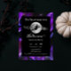 Convoca seus convidados para uma emocionante reunião de Halloween com este Convite de festas de Figurino de Halloween de Bruxas Bruxas Roxas. Apresentando uma silhueta de bruxa soprando sobre uma vassoura voadora contra uma lua de cheio brilhante com rastros estrelados, sobre um fundo místico marmoreado, este convite expele uma elegância assustadora. Os detalhes da festa são mostrados em uma escrita elegante e na tipografia moderna, criando uma vibração. Impresso em estoque de cartão premium, é perfeito para ajustar o tom para uma noite mágica, inesquecível.
