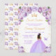 Este elegante e glamouroso e doce convite de 16 anos apresenta uma bela princesa com pele escura num vestido de bola roxo claro. O texto combina o script manuscrito e as fontes sans serif modernas para um aspecto elegante e sofisticado. Os arranjos florais, borboletas e confete de ouro criam a mistura perfeita de rústicos e quicos. Gráficos por www.etsy.com/uk/shop/SunflowerDayLove