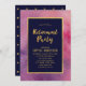 Este elegante Convite de festas de aposentadoria apresenta uma aquarela rosa púrpura, as palavras "Partido da aposentadoria" e uma borda em folha de ouro falso e um centro azul escuro. O convite tem um padrão de bolinhas de folha de ouro falso contra um fundo azul escuro. Consulte os itens correspondentes aqui https://www.zazzle.com/collections/purple_pink_watercolor_faux_gold_celebrations-119583355714601173?rf=238364477188679314 Personalize este convite substituindo o texto do marcador de posição no modelo para adicionar suas informações. Para obter mais opções, como alterar a fonte, o tamanho/cor do texto, o espaçamento entre letras ou para contrair ou expandir o texto curvo, clique no botão "Personalizar". *Observe que a Marca d'água do Zazzle que aparece na visualização de zoom NÃO aparecerá no produto impresso final. © Rosewood e Citrus