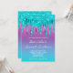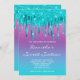 Um convite bonito para sua fabulosa festa de 16 festas de aniversário. O aqua cintilante falso, a turquesa e o brilho multicolorido e as gotas de folhas criadas com gráficos de arte digitais contra um fundo onipresente, cor-de-rosa brilhante, roxo lavanda, azul, azul-céu e azul-turquesa. Personalize o estilo de fonte, o tamanho, o espaçamento e a cor elegantes, conforme necessário. Convites de festa de aniversário personalizáveis. Nadinha de goma-lama moderna, convites para perfuração de folhas de glitéricas quicas.