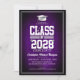 Convites de festa de formatura divertida em cores escolares populares, roxo e prata