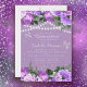 Convite de aniversário de Quinceañera para meninas com lindas e elegantes flores roxas, borboletas prateadas e lamparinas.