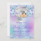 Chá de fraldas rosa e roxo de sereia com adorável sereia bebê morena com casca de ameixa em um belo fundo floral pastel. Este belo convite para chá de fraldas de sereia é facilmente personalizado para o seu evento simplesmente adicionando os detalhes do seu evento.