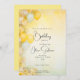 Flores amarelas e brancas de limão impressionantes combinadas com balões amarelos brancos e vívidos para um convite festivo de comemoração de aniversário, acentuadas com caligrafia de estilo manuscrito. Use nossa modelo fácil de personalizar para personalizar com seus detalhes - uma Design de impressionante © por WhimsicalArtwork™
