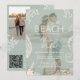 Coastal tropical ocean beach sage green photo overlay wedding invitation featuring hand drawn sea horse, starfish and ocean corals and a chic whimsical retro vintage tan handwritten calligraphy script. +++++++++++ Personalize it with your text, 3 custom photos, and your QR CODE to the wedding website to rsvp online.
