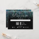 Moderno Abstrato RSVP - Negrito edgy cascata de guirlanda brilhante de teal desce a página, em caligrafia manuscrita está "nos avise" - iniciais do casal no topo - o resto do texto é simples e limpo - tudo em um fundo preto. Papelaria de casamento elegante.
