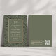Caligrafia verde-sábio, bege e elegante preto elegante caligrafia floral mínima clássica com noiva e iniciais de noivos monograma personalizado convite para o casamento QR. Este cartão pode ser facilmente editado com o seu texto pessoal.