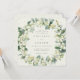 Um convite de casamento de inverno quadrado com florezinhas de neve pintadas à mão e caules de eucalipto dispostos em uma bela coroa botânica contra um fundo creme. Todo o texto é totalmente editável, e os pontos espalhados na frente e no verso podem ser excluídos antes de encomendar, se preferir. Por favor, visualize esta Coleção na minha loja para convites com opções de redação alternativas e em diferentes tamanhos/formatos/cores. Itens do conjunto de casamento e do dia também estão disponíveis na minha loja.