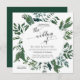 Convite quadrado do formato. Simples. Moderno. Elegante. O ideal para um casamento em cada estação, estes trabalhos de arte recolhidos floresta da aguarela da folha foi criado pelo artista, Audrey Jeanne Roberts. Caracterização: folhas do eucalipto, eucalipto semeado, samambaias e folhas na esmeralda rica, verde floresta. Copyright.