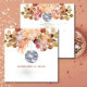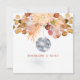Marque a cena de uma comemoração temática do Disco. Branco é a cor de fundo para este design de Janto personalizado elegante da bola Disco floral. As manchas de prata também estão no design. Altere facilmente as informações para o seu próprio convite personalizado. Elegante design de casamento formal.