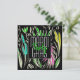 Convites Quadrado Preto Rosa Botânico Desenhado à Mão de Ma