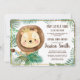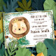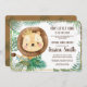 Lion Themed Party/ Virtual Chá de fraldas Invitation - Whimsical Lion Party/ Chá de fraldas por Mail Invitation - Ele é o rei da selva e, em breve, o rei de você em casa e seus corações! Um pequeno rei está a caminho. Um convite para chás de fraldas virtuais para os tempos em que você não pode estar com as pessoas que ama. Porque as coisas nem sempre vão como planejado. Apresentando um bebê rei feio cercado por novas folhas verdes da selva tropical. A parte traseira da carta tem uma textura de cartolina falso com um sutil padrão verde de folha. Perfeito para um chá de fraldas virtual. Um pouco!