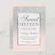 Um moderno, bonito e elegante chá brilhante prateado com bloco cor-de-rosa pincelado convite de aniversário Sweet 16 com e elegante quadro prateado Perfeito para uma princesa Doce 16.