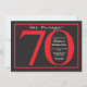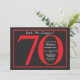 Surpresa 70 de Aniversário. Festa de aniversário Vermelha e Negra Convide com Fundo de Quadro. Surpresa Aniversário. Aniversário Adulto. Homens ou Mulheres Bday Bash Party. Para mais personalização, clique no botão "Personalizar" e use nossa ferramenta de design para modificar este modelo.