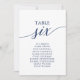Estes elegantes cartões azuis da mesa 6 assentos são perfeitos para um casamento simples. A design neutra apresenta uma carta minimalista decorada com tipografia romântica e caprichosa. A placa impressão na frente e atrás (lado duplo).