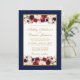 Cartão de Convite para Casamento Dourado e Azul Floral da Elegante Watercolor Burgundy com Quadro Dourado.