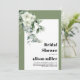 Este chá de panela apresenta uma moldura branca com ramificações de eucalipto no canto superior esquerdo, enfeitiçada com delicadas flores brancas e bordada por uma cor verde macia. O texto do convite é apresentado em uma tipografia ousada, fazer de destaque e fácil de ler. As faixas verdes que enquadram o convite de três lados complementam perfeitamente o tema floral, criando um olhar coeso e visualmente atraente para o evento.