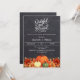 Um fundo castrado rústico. Decorado com abóboras e flores laranja e amarelas. Personalize e adicione os detalhes da festa. Script de texto: Grateful e abençoado.