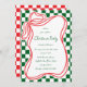Comemore a época de férias em estilo convidando seus entes queridos para uma festa de Natal com nossos encantadores convites de fundo retro-cheios e com estrutura de arco. O convite mostra os detalhes de seu evento em um roteiro belamente manuscrito, enfeitado com um arco festivo e fita em vermelho clássico, contra um pano de fundo alegre de retrorreflectores verdes. Espalhe a alegria do feriado e faça seu evento se destacar com nossos convites caprichosos.