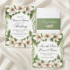 Celebre seu dia especial com este eterno e refinado convite para casamento, com flores brancas delicadas de magnólia, enquadradas por um pinho verde. A trabalho de arte botânica aquática traz um toque suave e romântico enquanto mantém uma sensação elegante e minimalista. Totalmente personalizável com os nomes do casal, data do casamento, local e detalhes. Ideal para casamentos no inverno, temas inspirados na natureza ou cerimônias de jardim do sul. Impresso em papel de alta qualidade e fácil de personalizar com suas fontes e cores favoritas.
