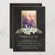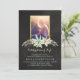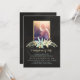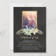 Convite para um serviço de memorial com fundo de chalkboard e dentro de foto personalizado com um quadro dourado, decorado com flores.