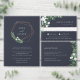 Escolha estes convites botânicos de cor rica para casamentos no inverno elegantes, núpcias de outono ou outono, ou casamentos noturnos no verão. O design chic combina elementos naturais e geométricos para uma aparência nova e moderna. Seus detalhes de casamento aparecem em letras brancas, enquadrados por uma falsa borda de folha de cobre e cercados por folhagem verde, folhas exuberantes e pequenas flores brancas em um rico fundo azul-marinho. Itens correspondentes disponíveis na nossa coleção de Estufa.