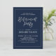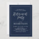 Celebre seu dia especial com este modelo na moda moderno do convite de festas de Reforma. Este design apresenta caligrafia chic e um quadro simples com um fundo azul marinho.