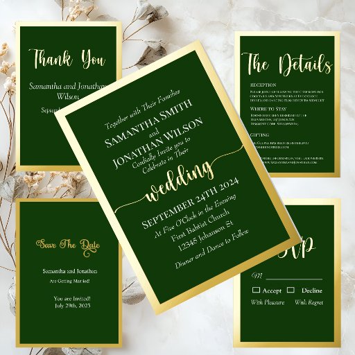 Convites Quadro de Script Dourado Elegante Verde salvar o c