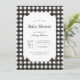Convite para o show de xadrezes de gingham preto e branco clássico, eterno e preto. Estilos de fonte e layout personalizáveis, com um plano de fundo simples e padronizado, com um padrão de xadrez geométrico e limpo. Perfeito para convites para chás de fraldas unisex, convites para chás de bebês e convites para chás de fraldas de chic country. ABORDAGEM: design de verificação clássico, convites para chás de fraldas minimalistas, chá de fraldas neutro em gênero, cartão preto e branco chico, tema Elegante do chá de fraldas, padrão de verificação do Eterno, talheres sofisticadas de xadrez, chá de fraldas de pré-disquete, chá de fraldas monocromático, estilo russo de verificação, convites para xadrez inspirados em Vintage, Padrão geométrico negrito, chá de fraldas neutro em país, tema al chá de fraldas, de xadrez moderno, Motif Cozy Check, papelaria inspirada na Farmhouse, convites para chuveiros infantis padrão