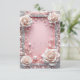 Elegante quadro decorativo com rosas rosadas moles e pérolas brilhantes com gemas cintilantes em volta de uma rosa claro, criando uma estética luxuosa e sofisticada.