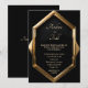 A imagem apresenta uma bela escrita dourada e um quadro hexagonal num estilo artístico moderno e elegante com um acabamento luxuoso de ouro. A ousada geometria do hexágono é acentuada por linhas vivas e limpas e por uma cintura metálica quase espelhada, dando-lhe uma sensação sofisticada e contemporânea. O interior da armação é um preto profundo, criando um contraste impressionante que enfatiza a riqueza do ouro. Esta design seria adequada para um convite elegante para o casamento, acrescentando um toque de opulência e beleza minimalista à apresentação geral. Personalize o texto relativo aos nomes e detalhes do casamento. Você pode baixar a placa para seu dispositivo móvel ou computador. Eu desenhei o cartão com a ajuda de uma tecnologia de ai generativa.