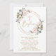 Convites Quadro Dourado de Batismo Floral Rosa Blush