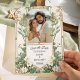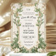 Anuncie seu dia especial com elegância e charme natural. Este elegante eucalipto salva o cartão de data apresenta uma fantástica vintagem botânica inspirada em uma armação de ouro entrelaçada com verde-luxuoso e delicadas flores brancas. Perfeito para casais sonhando com um romântico, inspirado no jardim, ou um casamento ao estilo vintage, esta design combina sofisticação clássica com beleza orgânica. Totalmente personalizável com seus nomes, data do casamento e detalhes do evento, criando uma atenção sincera que seus hóspedes vão tesourar.