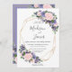 Este elegante convite de casamento apresenta um belo arranjo floral de cor-d-água púrpura, lavanda, quadro geométrico dourado e detalhes de brilho dourado. Projetado para combinar com a nossa coleção de casamento Chelsea Blush e Lavanda Floral. Personalize-o com seus detalhes de forma fácil e rápida, basta pressionar o botão personalizar para reorganizar e formatar o estilo e a colocação do texto. c) O Feliz Cat Studio