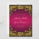 Convite luxuoso com fundo cor-de-rosa e quadro dourado esculpido com flores e folhas. Este elegante modelo de convite para casamento é perfeito para convidar convidados. Basta inserir os detalhes de seu evento nesta modelo para criar um convite único.