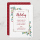 Ilustração festiva de verde de férias e bagas sagradas enfeita este convite moderno para uma Casa Aberta de Férias ou outro evento sazonal. Cada linha de texto pode ser personalizada para alterar o convite a qualquer parte, janto ou outro encontro de feriados.