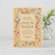 Uma moldura rústica e encantadora de flores ilustradas envolve este convite de festa de outono quente e convidativo, apresentando cores laranja, amarelo dourado e azul céu. Perfeito para um encontro de outono com amigos, aniversário de adulto ou mesmo jantar de Ação de Graças, o texto fácil de editar oferece muitas opções de personalização.