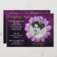 design floral maravilhoso com uma linda margarida roxa solteiro contra um fundo roxo escuro. O quadro de anel de ouro simples e elegante aguarda sua fotografia favorita. Faz um design maravilhoso e personalizado. Substitua a foto e o texto do retrato de amostra por seu. Perfeito por comemorar um falecido que apreciava flores, jardinagem, natureza, beleza da vida...