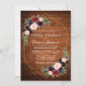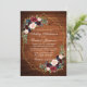 Clorideira Moderna Borgonha Floral Azul Dourado Geométrico Convite para Casamento - Madeira Rústica