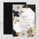 Este Convite Elegante de Casamento apresenta um design floral branco e ouro impressionante, enquadrado em detalhes de eterno preto. A paleta de cores clássica e os detalhes complexos criam uma atmosfera sofisticada e luxuosa para seu dia especial. Personalize o texto para torná-lo exclusivamente seu e dê o tom para uma celebração memorável de casamento.
