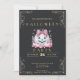 Prepare o palco para uma encantadora e balbuciosa celebração do Dia das Bruxas com este convite de festas divertido e moderno do quadro. O fundo preto do quadro negro evoca uma atmosfera assustadora, ainda refinada, reforçada por um elegante trabalho de rolagem nos quatro cantos. O texto simples dourado adiciona um toque elegante, garantindo que os detalhes do seu partido sejam na moda e fáceis de ler. No centro deste charmoso design é um adorável jack-o-lanterno branco, esportivo de um arco rosa lúcido. Essa tomada única da abóbora tradicional traz uma vibração doce e festiva ao convite, fazer-a perfeita para um evento de Halloween iluminado. Ao redor do jack-o-lanterno estão flores cor-de-rosa macios, borboletas fluviais, estrelas cintilantes e abóboras adicionais, criando uma cena mágica e convidativa que parece assustadora e encantadora. O verso do convite continua o tema negro do quadro, dando um olhar polido e coeso. Esta mistura de charme de Halloween e elegância moderna vai garantir que seus hóspedes estejam animados por uma noite cheia de diversão festiva, magia e surpresas deliciosas!