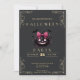 Convide seus hóspedes para uma celebração na moda e assustadora com este convite de festas de Dia das Bruxas divertido e moderno. O fundo preto do quadro negro estabelece um tom estranho, mas sofisticado, com um elegante trabalho de rolagem nos quatro cantos adicionando um toque de charme. O simples texto dourado contrasta lindamente com o fundo escuro, garantindo que os detalhes do seu partido sejam claros e reveladores. No centro da design está um adorável jack-o-lanterno preto, acrescentando uma reviravolta única à tradicional abóbora de Halloween. Tocado com um arco rosa e preto lúgubre, esta gira-o-lanterna traz um talento fresco e moderno para a imagem clássica do Dia das Bruxas. Ao redor da abóbora estão batedores pretos floreados e uma dispersão de estrelas pretas e cor-de-rosa, somando à atmosfera festiva uma onda de magia balnear. O verso do convite continua o traçado negro do quadro negro, criando um design coeso e polido de frente para trás. Este convite é perfeito para uma festa de Halloween que combina diversão assustadora com elegância moderna, assegurando que seus convidados estejam animados por uma noite cheia de surpresas festivas e magia de Halloween!