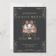 Faça um tom festivo para a sua festa de Halloween com este charmoso e moderno convite do tema do quadro. O fundo preto do quadro negro cria instantaneamente uma vibração assustadora, mas elegante, complementada pelo delicado trabalho de rolagem em cada canto. O simples texto dourado se destaca lindamente, fazer seus detalhes de evento claros e na moda contra o pano de fundo escuro. No centro da design é uma super fofa jack-o-lanterna, vestindo um adorável arco laranja. Cercado por vibrantes flores laranja, borboletas, estrelas e abóboras, esta cena balbuciana adiciona uma reviravolta lúdica e fresca ao tradicional decor de Halloween. A combinação de elementos autóctones e charme de Halloween torna este convite perfeito para uma celebração que é festiva e divertida. O verso do convite carregar o tema negro do quadro, fornecendo um design polido e coeso. Esta maravilhosa mistura de cores sazonais, imagens bonitas, e detalhes elegantes é certamente para que seus convidados fiquem animados por uma noite de mágica, riso e surpresas do Halloween!