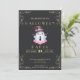 Convide seus hóspedes para uma celebração divertida e caprichosa do Dia das Bruxas com este moderno convite de festas do quadro-negro. O fundo preto do quadro negro define o tom perfeito, assustador mas na moda, complementado por um delicado trabalho de rolagem em cada canto. O simples texto dourado adiciona um toque de elegância, fazer que seus detalhes de evento se destacem com talento. No coração desta design está um fantasma rosa e branco super fofo, adicionando uma reviravolta divertida ao tema clássico do Dia das Bruxas. Este fantasma encantador está vestido com um chapéu de bruxa negra adornada com um arco rosa e uma gravata negra, misturando um senso de diversão e estilo na design assustadora. A combinação desses elementos torna o convite perfeito para uma festa de Halloween reluzente que mistura encanto com mistério. O verso do convite continua o elegante tema negro do quadro negro, garantindo um olhar polido e coeso. Este convite consegue o equilíbrio perfeito entre assustador e doce, fazer ideal para uma celebração de Halloween cheia de diversão, magia e surpresas deliciosas!