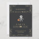 Convites Quadro Preto e Dourado Esqueleto Costume Halloween