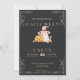 Este convite para a festa de Halloween é uma escolha encantadora e caprichosa, apresentando um design delicioso contra um pano de fundo de preto profundo. A frente é enfeitada com elegantes bordas de canto dourado e escrevendo, acrescentando um toque de sofisticação ao design. No centro, um fantasma super fofo vestindo um chapéu de bruxa rosa pega o palco central, adicionando um elemento lúdico e mágico ao convite. Em frente ao fantasma, está um amistoso jack-o-lanterno, que reforça ainda mais o tema festivo do Halloween. Ao redor do fantasma e do jack-o-lanterno estão folhas laranja e verde, adicionando um toque de encanto automático ao design. A paleta colorida de preto, ouro, rosa, laranja e verde cria um olhar vibrante e atraente que é perfeito para a celebração do Dia das Bruxas. O chapéu de bruxa rosa adiciona um pop de cor e chorão ao fantasma, enquanto o jack-o-lanterno laranja e as folhas adicionam um elemento tradicional de Halloween. Os sotaques dourados adicionam um toque de elegância, unindo o design perfeitamente. Juntos, esses elementos criam um design que é simultaneamente divertido e na moda, definindo o palco para uma festa memorável do Dia das Bruxas. O verso do convite prossegue o tema com seu elegante fundo negro, garantindo um olhar coeso e na moda. Quer você esteja hospedando uma festa de fantasia assustadora ou um concurso de esculturas de abóbora cheio de diversão, este convite é certo para dar o tom perfeito para sua comemoração de Halloween. Convide seus convidados para se juntarem a vocês por uma noite de diversão e festividades com este charmoso convite para a festa de Halloween.